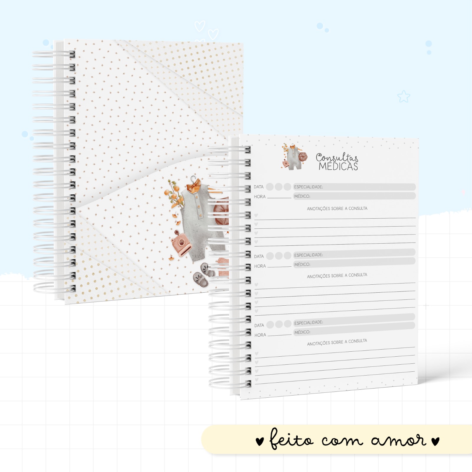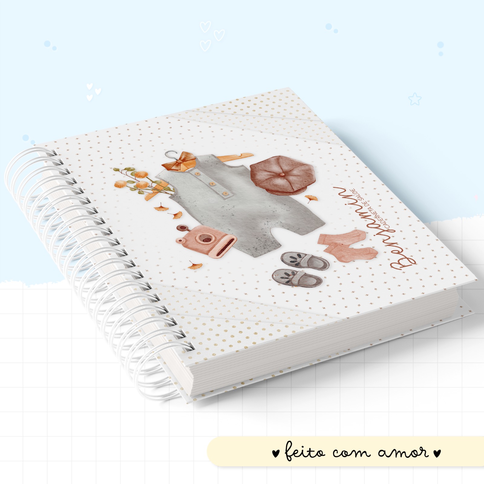 - Detalhes no tema que tornam a caderneta ainda mais charmosa;